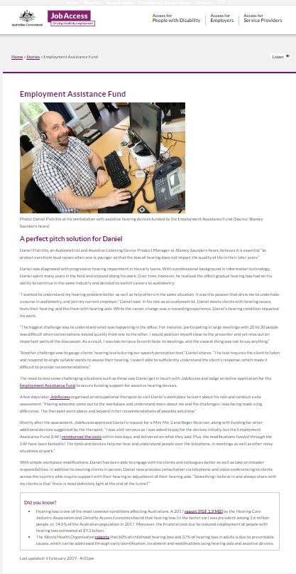 I have shared a number of stories in the past about my interactions with JobAccess. They were crucial in helping me get some of the tools that have helped me overcome the impacts of my hearing loss at my workplace and outside of it also.