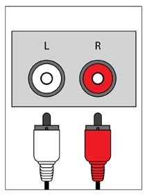 Usually there will be just one set of audio outputs which may be labelled as AUDIO OUTPUT L/R or MONITOR OUTPUT L/R. The key thing you are looking for are the words OUTPUT or OUT next to a pair of sockets labelled perhaps Left and Right (usually Red and White in colour). Sometimes they are grouped with a third Yellow socket but you can safely ignore this one.